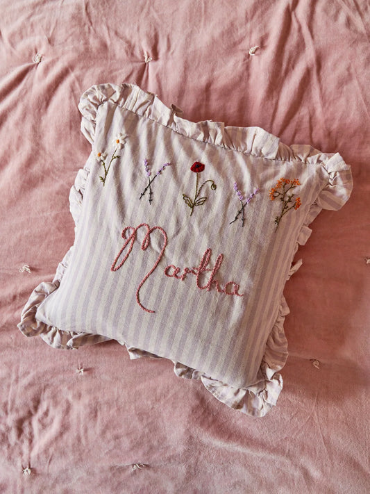 Lilac Stripe Embroidered Cushion