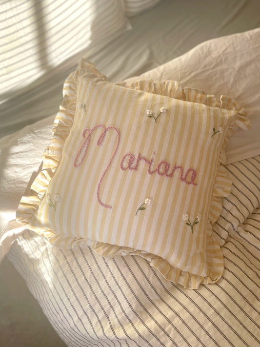 Yellow Stripe Embroidered Cushion
