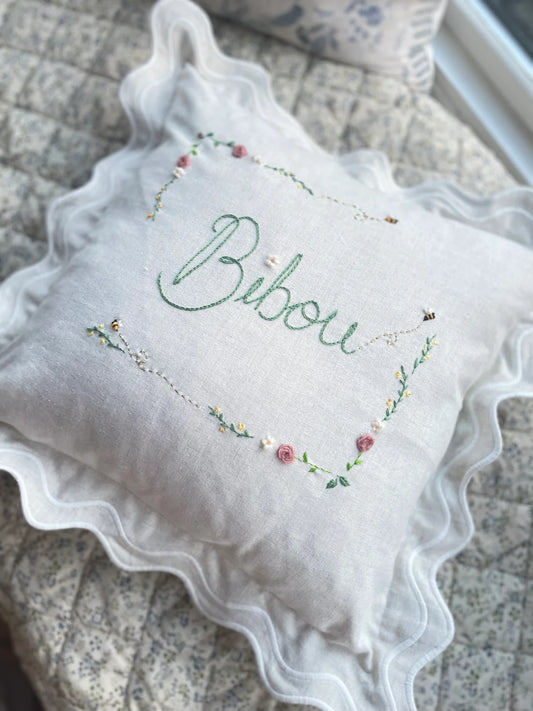 Cream Scallop Trim Embroidered Cushion