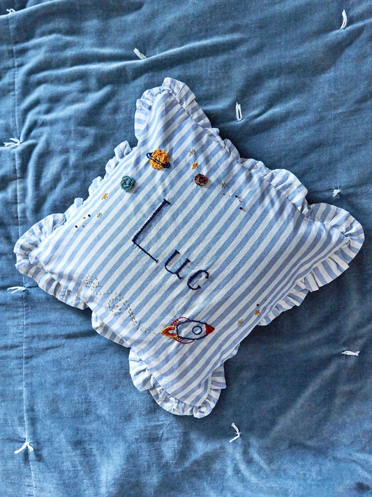 Blue Stripe Embroidered Cushion