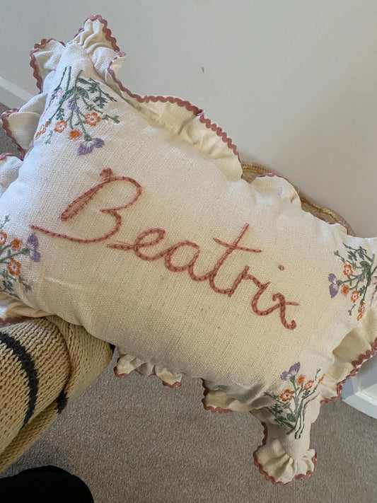 Ruffle Trim Embroidered Cushion