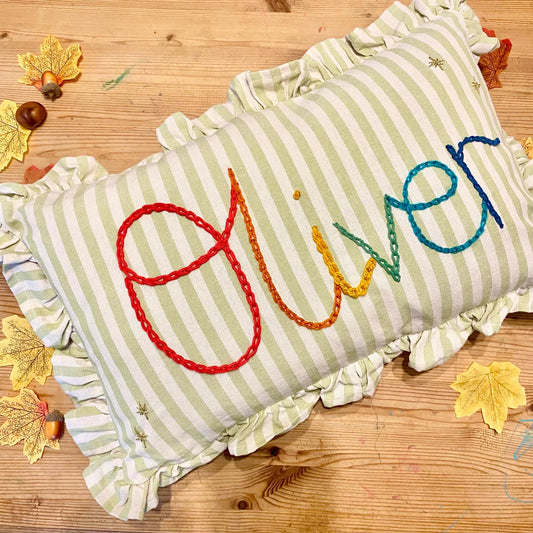 "I love to use bright colours, bold stripes and beautiful florals in my work. All things which spark joy for me personally and which I hope bring a little bit of joy to the person they are made for. The handmade and personalised nature of my items means that they make great gifts and hopefully become treasured keepsakes. I love that they might be remembered by the children that they are made for for a long time to come."