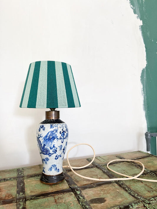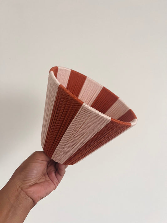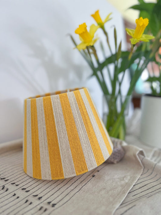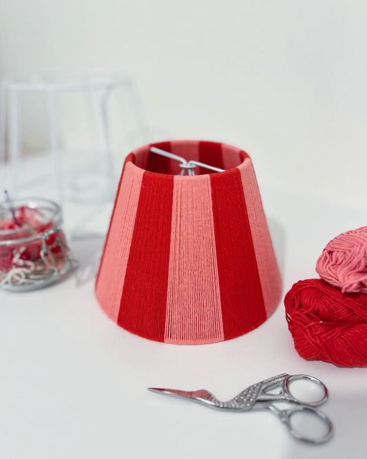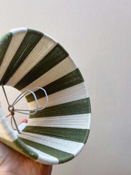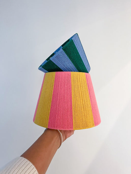 Dina was first inspired to create a string lampshade after seeing the unique construction technique in Europe. She started by making one for her children's bedroom, and quickly fell in love with the process and distinctive look of the finished pieces.