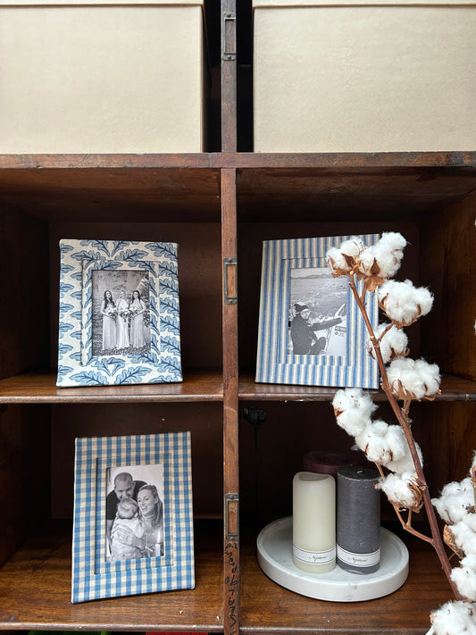 "Our fabric photo frames are a stylish way to display your cherished memories. The fabric can add warmth, colour, and a sense of comfort to any space, making them a great choice to complement a variety of interior designs."