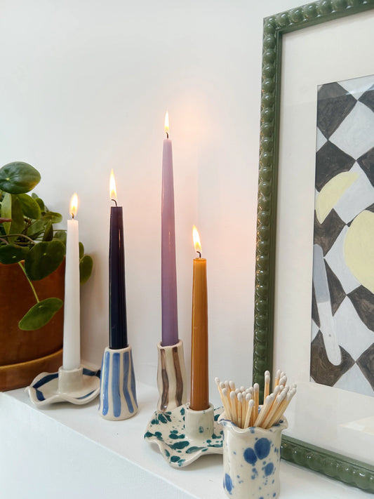 Handmade Stoneware Wonky Candle Holder - Blue Stripe