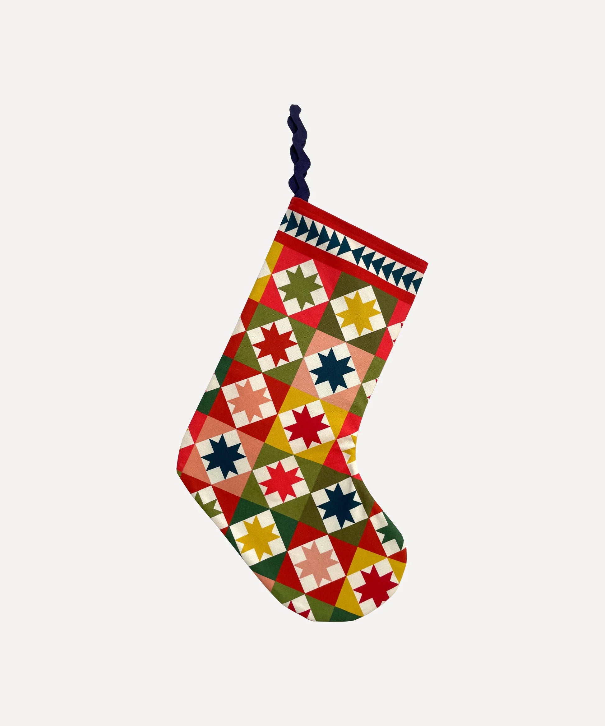 A new collection of Christmas stockings with playful prints inspired by patchwork quilts.